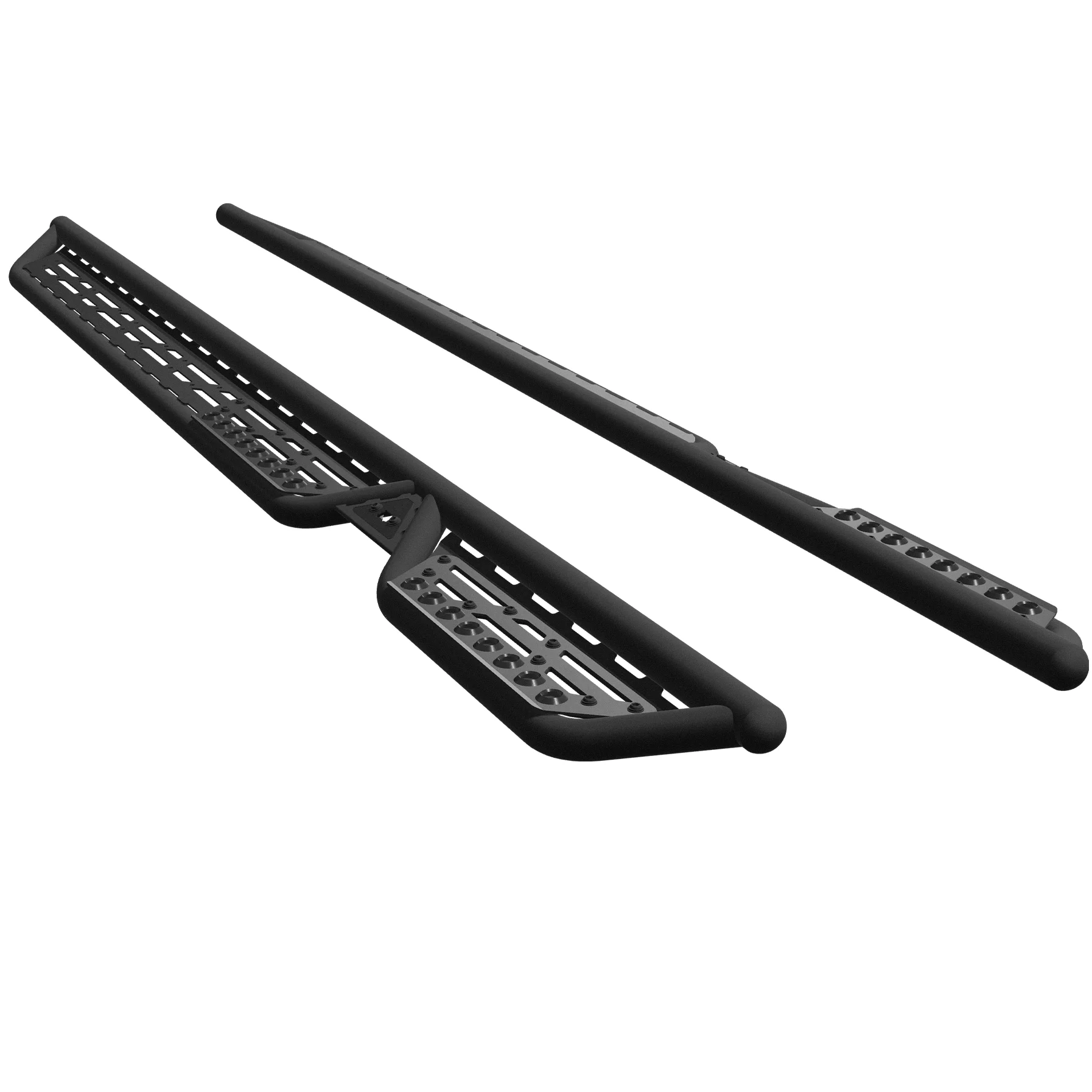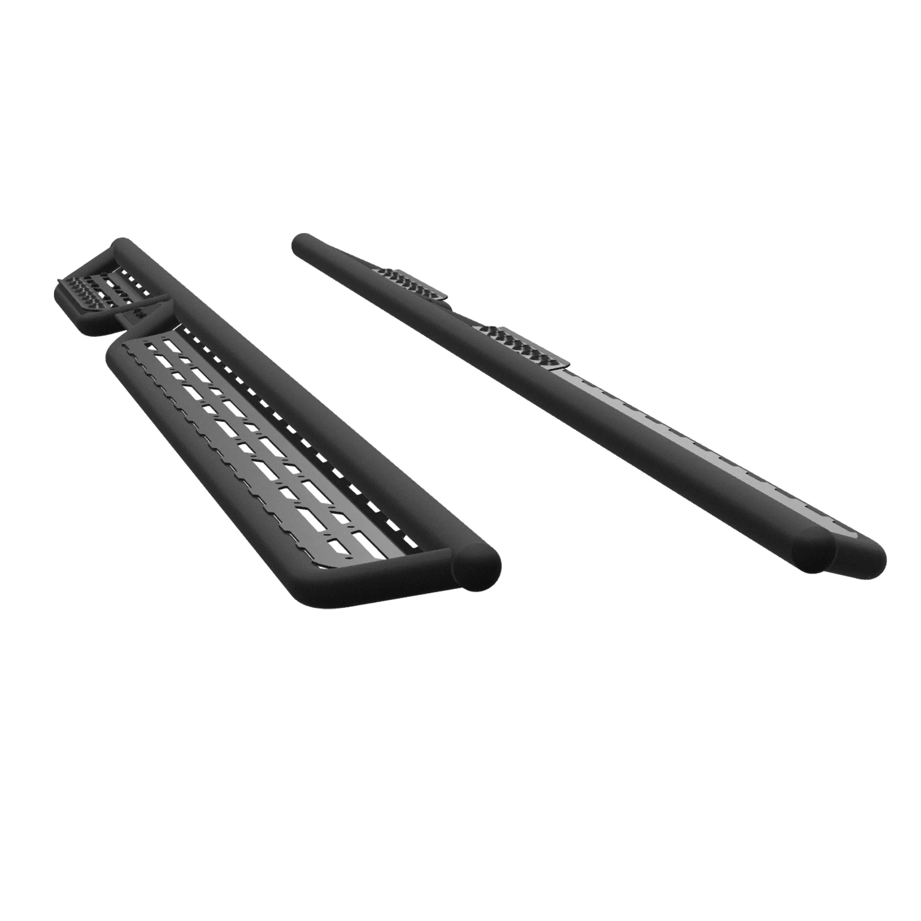 To system, który łączy uchwyt koła zapasowego i drabinkę do vana. Umożliwia bezpieczny transport koła zapasowego oraz wygodny dostęp do dachu pojazdu.